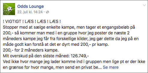 En af de sider hedder Odds Lounge, som vi skrev om i foråret. Her kunne man for få penge - typisk 150 kroner - købe sig adgang til spilforslag baseret på sikre udenlandske kilder. På overfladen så det også godt ud, og ifølge spillesiden væltede pengene ind.