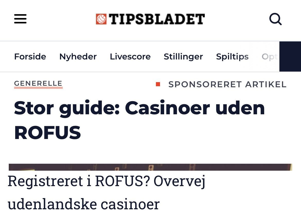 Sagens kerne består i, at det populære fodboldmedie indtil fredag eftermiddag har haft en betalt artikelannonce, hvori du finder en ”Stor Guide: Casinoer uden ROFUS”.