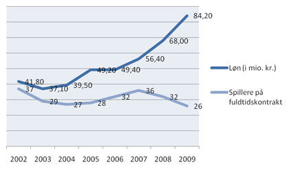 Alene fra 2008 til 2009 er lønudgifterne steget med næsten 20 millioner kroner, og at pengene ikke primært er gået til hverken bolddrenge, stadionspeakere eller bogholdere, fremgår af følgende passage fra årsrapporten.
