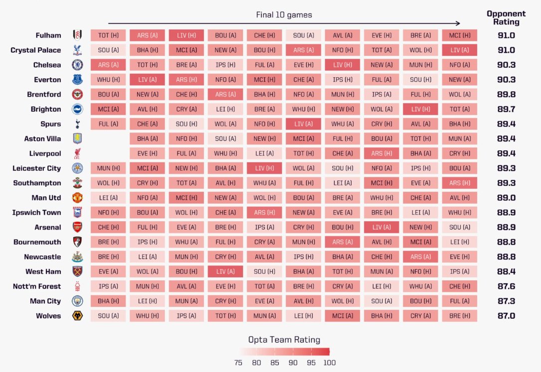 Endnu mere vigtigt; så har Chelsea - igen ifølge Opta - det tredjesværeste slutprogram i Premier League. De skal blandt andet spille ude mod Arsenal, Nottingham Forest, Fulham og Newcastle, mens de selv får besøg af Liverpool, Manchester United og Everton.