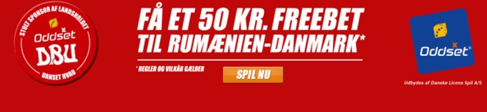- Du har nu fået et 50 kr. freebet på Rumænien - Danmark, som kan bruges både prematch og live.