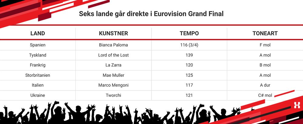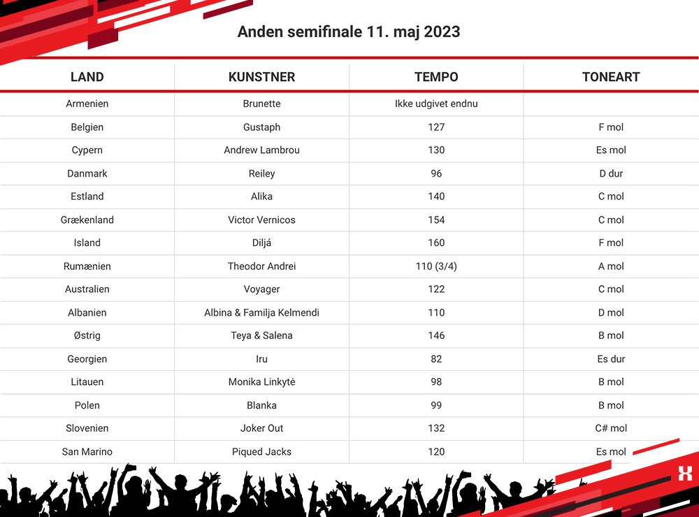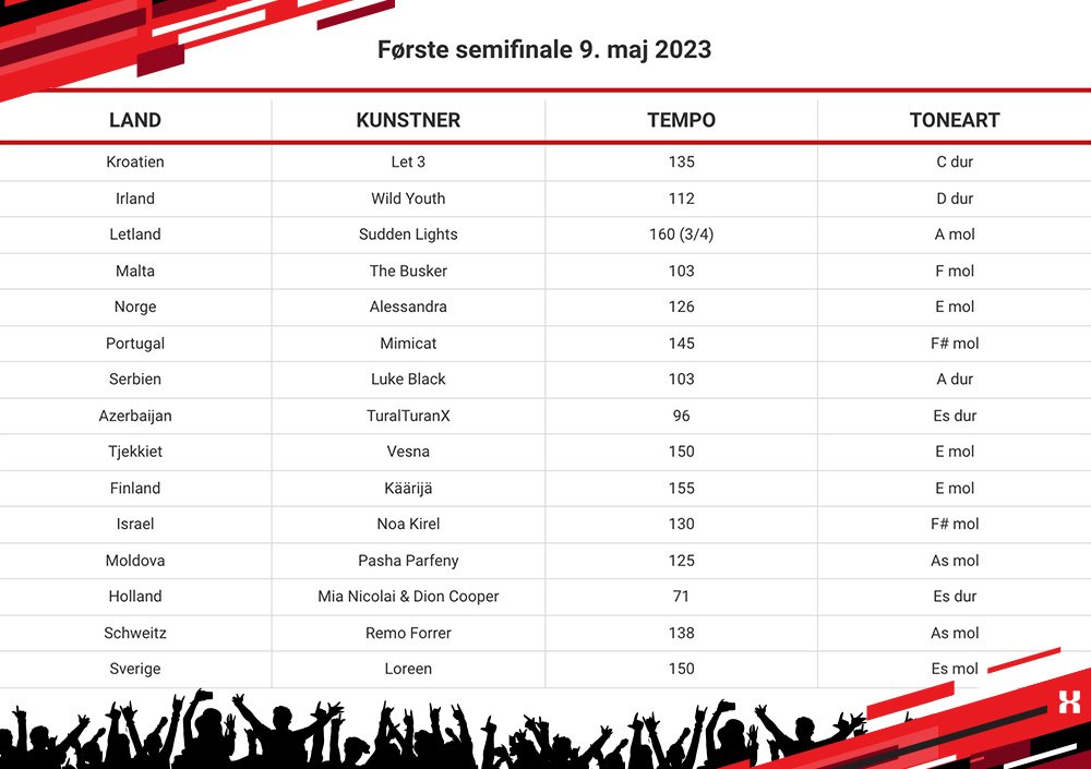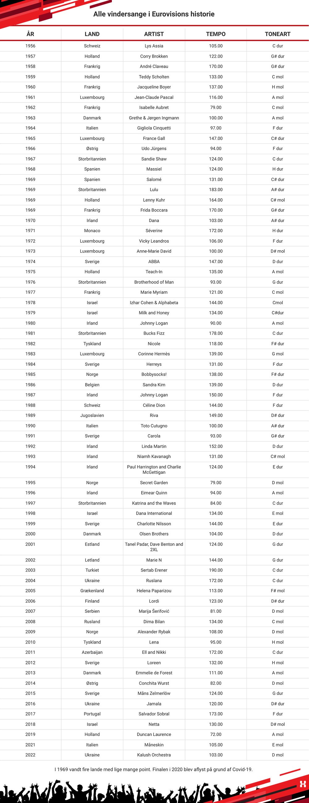 BetXpert bringer en oversigt over tonearter og tempier for alle semifinalister til Eurovision og alle de historiske Eurovision vindere.