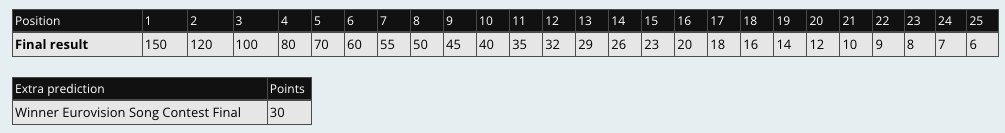 Hvis vi ser bort fra muligheden for at score ekstra point ved at ramme plet i en forudsigelse af, hvem der vinder Eurovision 2022, er der altså ikke meget hokus pokus ved denne konkurrence.