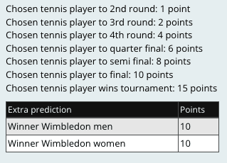 Hvis vi ser bort fra muligheden for at score ekstra point ved at ramme plet i en forudsigelse af, hvem der vinder Wimbledon for henholdsvis mænd og kvinder, er der altså ikke meget hokus pokus ved denne konkurrence.