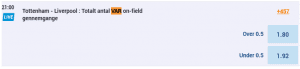 Et nyere aspekt, som alle har en mening om, og som for nogen kan få sindet i kog - sikkert også på trænerbænkene - er VAR. Og hos Nordicbet* kan du spille på, om der kommer en VAR-dom på banen (hvor dommeren afbryder kampen for selv at se en situation igennem i replay). Det giver henholdsvis odds 2,00 for, at det sker, og 1,74 for at det ikke sker.