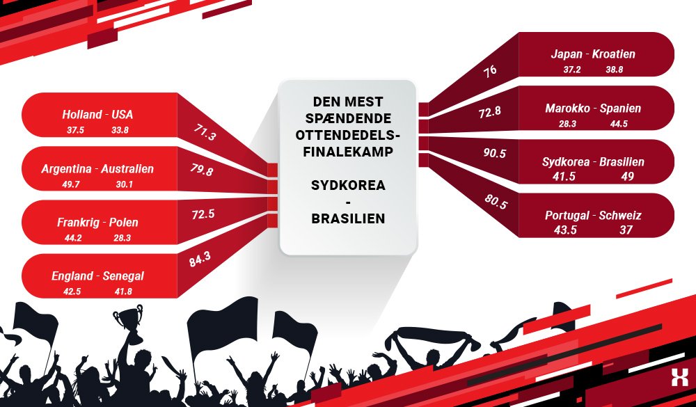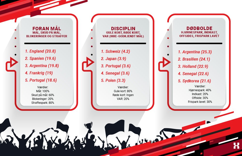 Efter at have gransket statistikkerne nøje har vi regnet os frem til, hvilke hold der skaber mest underholdning, når vi ser VM i fjernsynet.