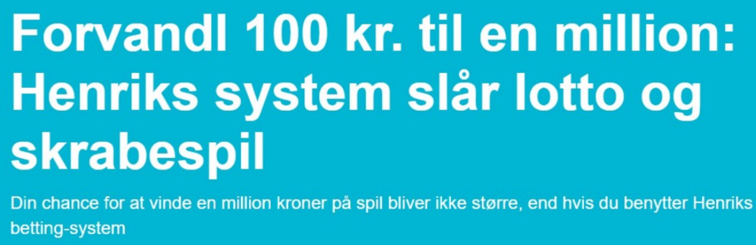 Sådan indleder Ekstra Bladets deres artikel, hvor der bliver gjort reklame for Henriks sportsbetting-system, "som giver dig chancen for at vinde en million kroner med et relativt lille start-indskud på 100 kroner. Systemet giver dig større mulighed for at vinde en million kroner end noget andet spil i Danmark."