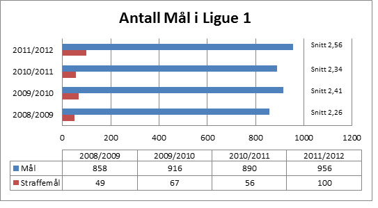 Det første og kanskje mest interessante aspektet med Ligue 1 er antall scorede mål. Det er naturlig å ta utgangspunkt i «post-Lyon-perioden» som er alt etter 2007/2008-sesongen. Trofé-grossisten vant som kjent serien syv ganger på rad før den tid, og vi har siden den gang hatt fire forskjellige vinnere; Bordeaux, Marseille, Lille og nå Montpellier.