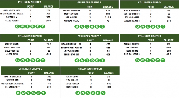 De to første runder er overstået, og 5 deltagere har maksimum point, mens 6 deltagere (heriblandt Betxpert) har 0 point og derfor har meget brug for point i denne runde. 14 af feltets 32 deltagere har formået at skabe overskud indtil nu og det bliver spændende at se hvordan det tal ser ud efter denne runde.