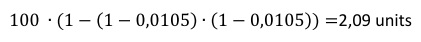 Begge kampe skal have et indskud på 1,05% (r=0,02), men hvilken kamp skal vi spille på først? Med en startkapital på 100 sætter 1,05 units på den første kamp. Herefter er kapitalen 98,95 units så den næste kamp får kun 1,039 units. Man kan med rette argumentere for, at det er så små marginaler, at det ikke betyder det helt store. Hvis man gerne vil have et lige stort indskud kan det dog nemt udregnes.