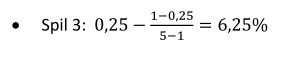 Spil 3: 0,625% (Kelly-metode = 6,25%)