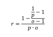Da vi ved at chancevurdering og det fair odds er hinandens reciprokke værdi (p = o0-1), kan formlen også skrives som: