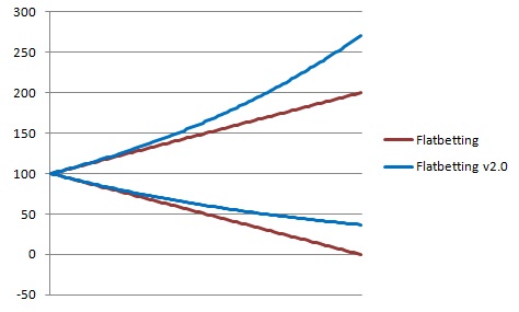 Ren flatbetting har den fordel at det er nemt. Men meget mere kan tilhængere heller ikke vride ud af den. Flatbetting i dens simpleste forstand, hvor man uanset risiko, værdi eller kapital sætter et fast beløb på hvert spil, har den egenskab, at man i nedgangstider taber en større og større andel af sin kapital, mens man i opgangstider vinder mindre og mindre.