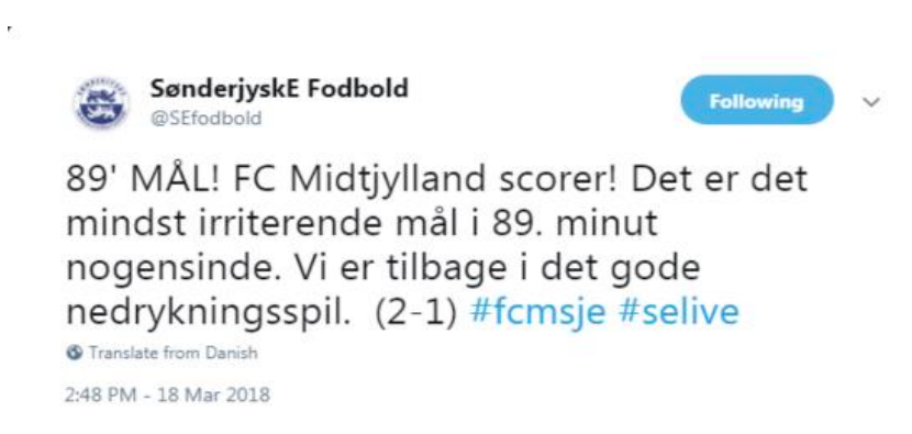 Også nedenstående tweet medførte stor debat i medierne og har været under behandling af Matchfixingsekretariatet.
