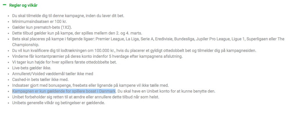 Han tilføjer, at Unibet* efter BetXperts henvendelse har ændret i konkurrencens regler og vilkår, så det ikke længere fremgår, at den kun gælder for danske spillere, da Unibet* forventer at gentage konkurrencen på et senere tidspunkt.