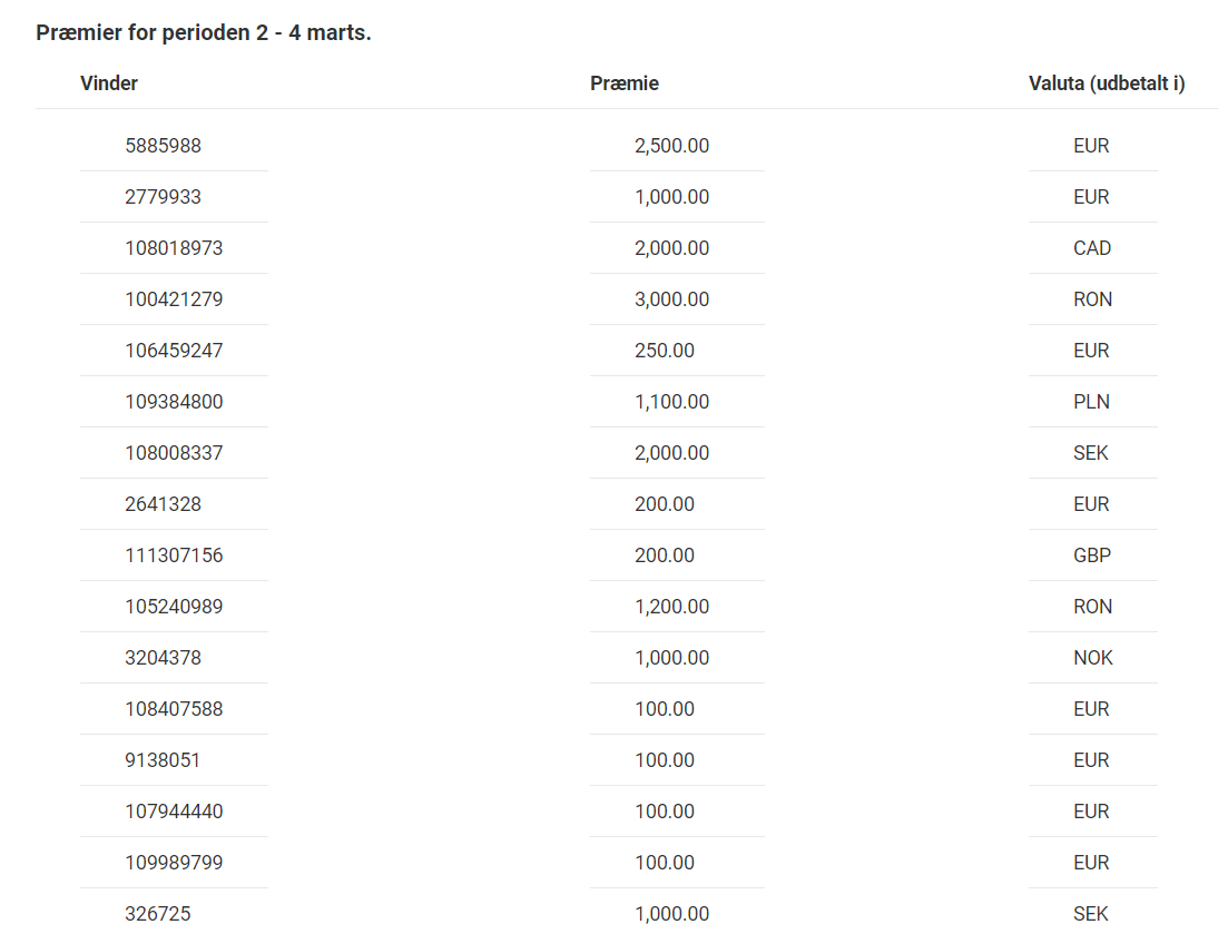 Præmier i dansk kampagne uddelt til udenlandske kunder
