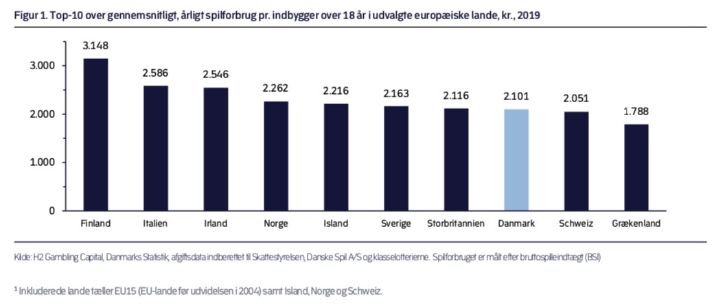 Tallene viser også, at danskerne og europæerne generelt bruger flest penge på kasinospil. Helt præcist brugte danskerne i 2019 41,7 procent af deres spilleforbrug på kasinospil. Det europæiske gennemsnit blandt de udvalgte lande i undersøgelsen lå på 45,4 procent.