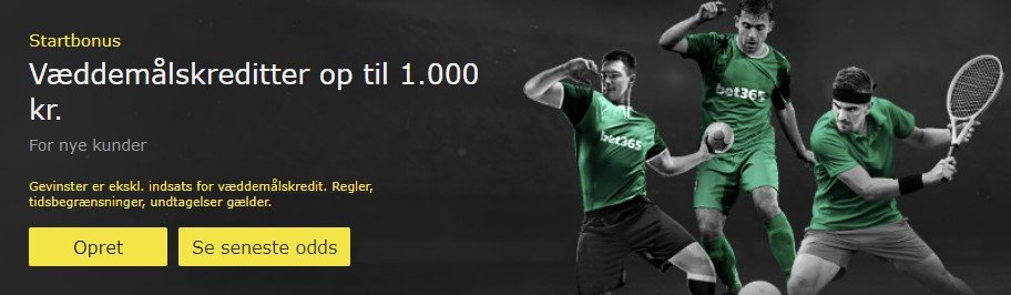 Ja, når du opretter ny spillekonto hos Bet365 kan du modtage en velkomstbonus, der består af væddemålskredit på 100 % op til 1000 kroner.