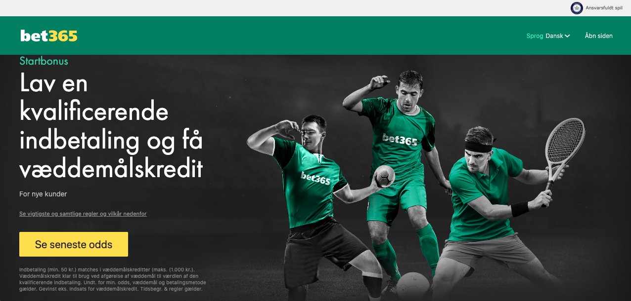 Den primære velkomstbonus, der er beskrevet her, er kun gældende til sportsvæddemål på bet365 og omhandler ikke bet365 Casino, LiveCasino eller bet365 Poker.