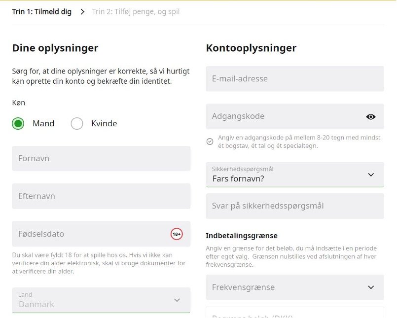 For at komme i gang med kontooprettelsen skal der indtastes personlige informationer som navn, fødselsdato, adresse og mobilnummer.
