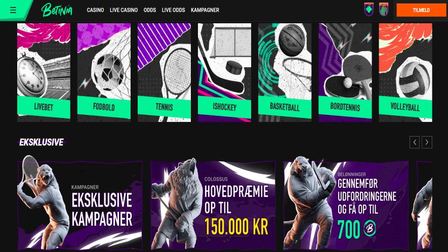 Og hvis det flotte udseende ikke får det til at krible i dine fingre og få dig til at oprette konto, kan det være, at bookmakerens promovering af sit specielle belønningsprogram gør. For jo mere man spiller hos Betinia, jo mere kan man vinde. Ja, et gammelt, velkendt bookmaker-trick til at overbevise dig om at starte eller fortsætte med at spille. Men hos Betinia foregår tingene anderledes. Ikke desto mindre lyder den ultimative præmie på 150.000 kr. interessant.
