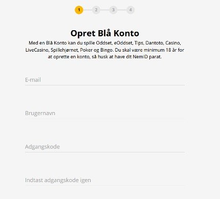 For at oprette en Blå Konto hos Danske Spil skal du starte med at indtaste din e-mail-adresse, og så vælger du dit brugernavn og adgangskode.