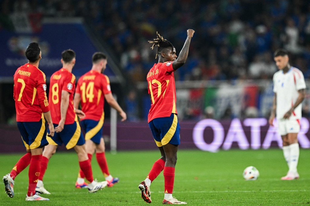 Foto: Spaniens Nico Williams fejrer scoring mod Italien i anden gruppekamp ved EM 2024. Copyright: OZAN KOSE / AFP