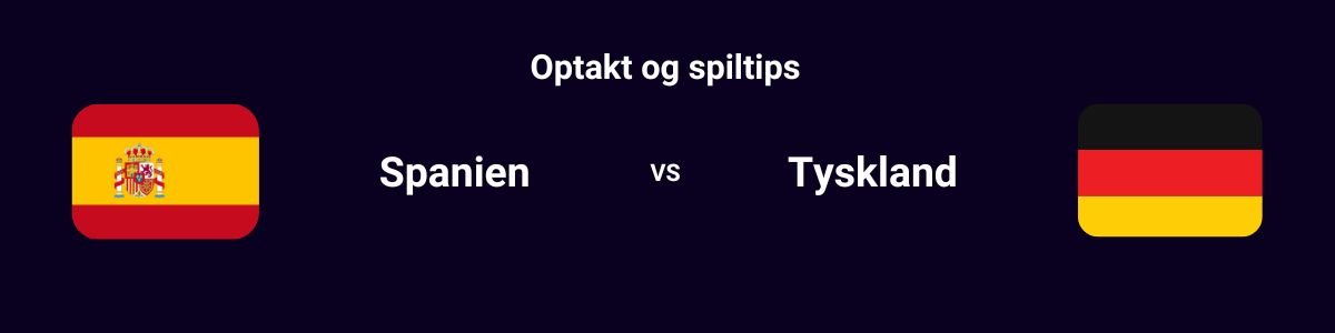 Fredag d. 5. juli møder Spanien og Tyskland hinanden i den første kvartfinale ved EM i fodbold 2024. Spanien er rigtig godt kørende. Det samme er Tyskland vel egentlig - og så er de tilmed på hjemmebane. Det er blevet tid til en kæmpe kvartfinale mellem to af Europas giganter. Her finder du optakt, analyser, spiltips og odds på kampen. Tyskland vandt relativt sikkert med 2-0 over Danmark. Godt nok skulle der noget ‘hjælp’ fra VAR til. Men Danmark var reelt udspillet i dele af kampen. Spanien måtte bagud mod Georgien, før det blev godt. Men så fejede man til gengæld også al tvivl af banen.