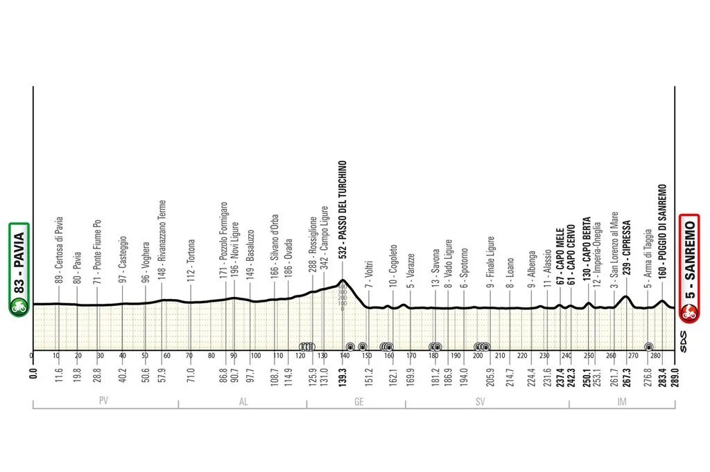 Ruten for Milano-Sanremo 2025: Det samme som altid