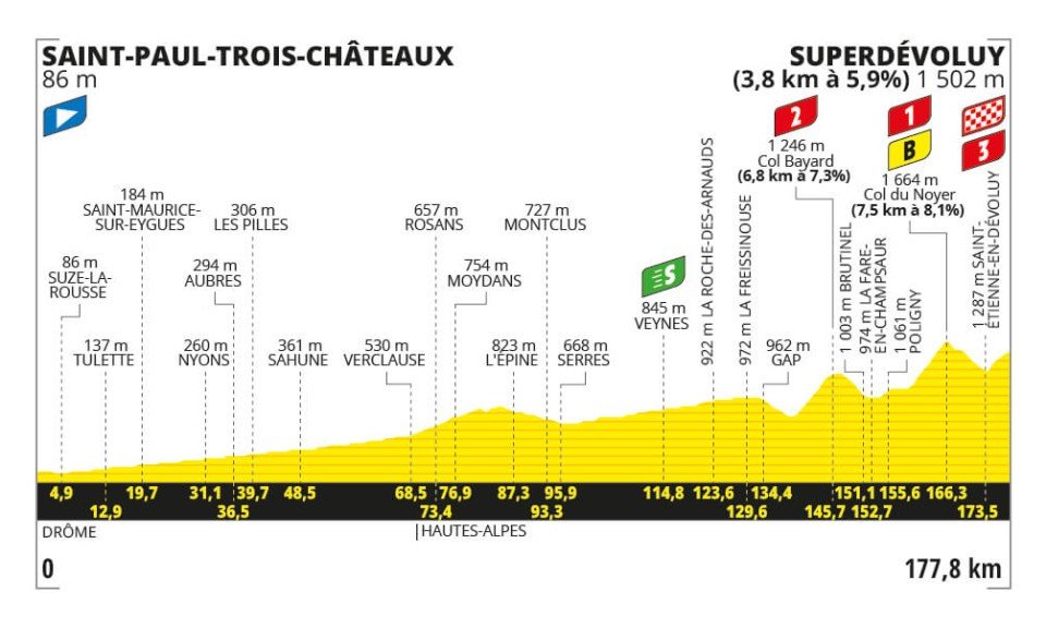 Målet ligger på flad vej ind mod Valence, der er kendt for sine hurtige, lige og brede afslutningsveje, som er perfekte til en massespurt. De tre sidste vindere af en etape i Valence var da også sprintere, og der er en god chance for, at vi får en ny sprintersejr onsdag.